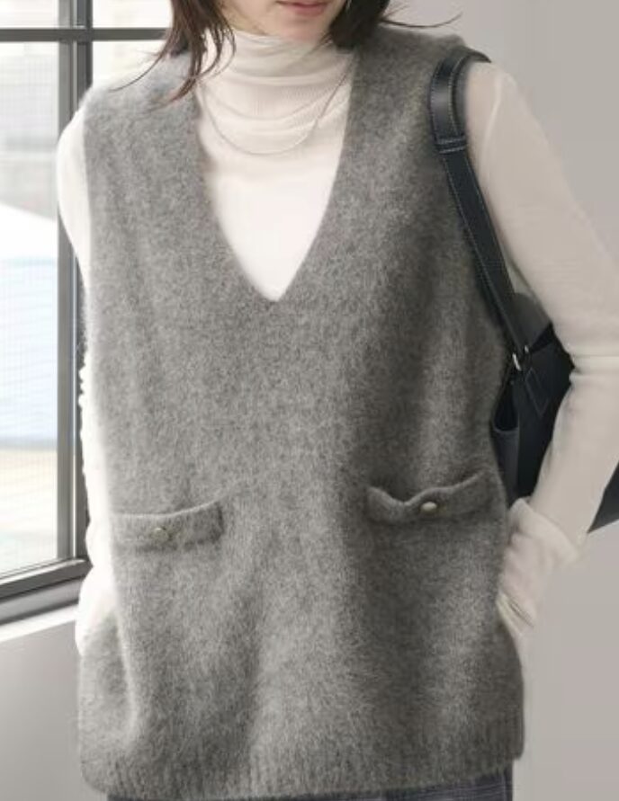 秋冬のトレンドニットとして衿つき、透け、袖なしが挙げられています。私たち大人が活用したい「着痩せ」にも繋がるのです。
